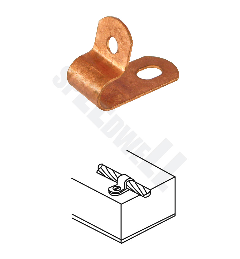 SPEEDWELL One Hole Clips can be used for fixing Cables and round conductors. These are supplied in open position for easy installation. Material: Copper