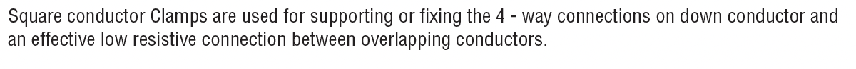 SPEEDWELL Square Conductor Clamp are used for forming straight, Through, Cross or T Joints in Cables and round conductors. Materials: Body - Gunmetal Fasteners - Naval Brass Torch: BS EN 50164-1:2000 (6 Nm)